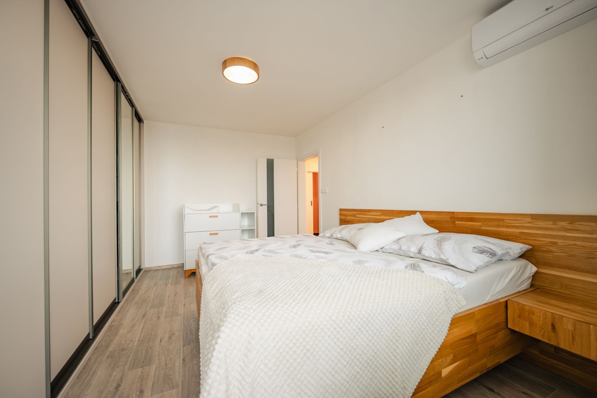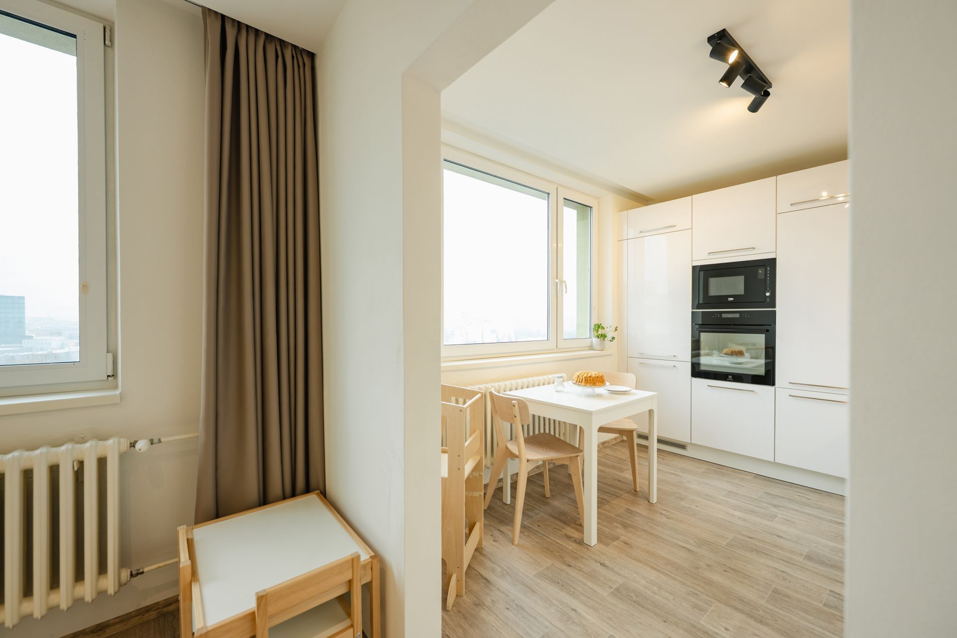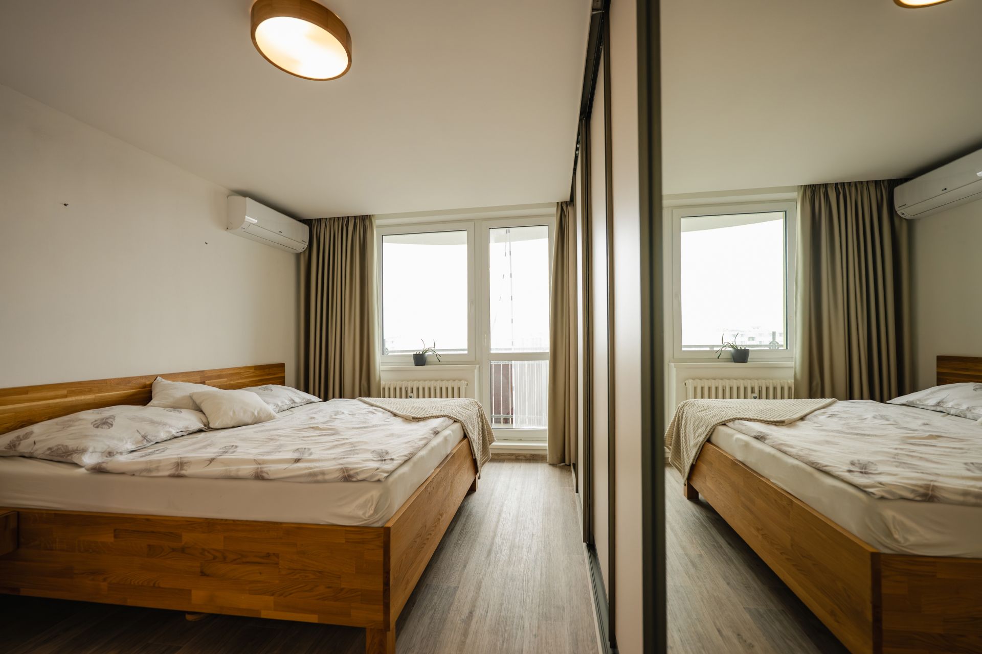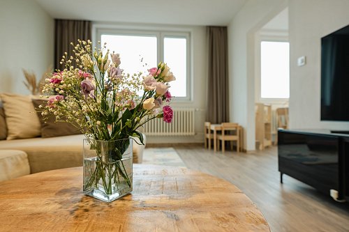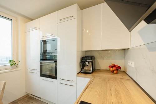 Moderní prostor, chytré vychytávky, nábytek na míru, klimatizace ve všech pokojích a k tomu balkon kde máš klid, soukromí a výhled.