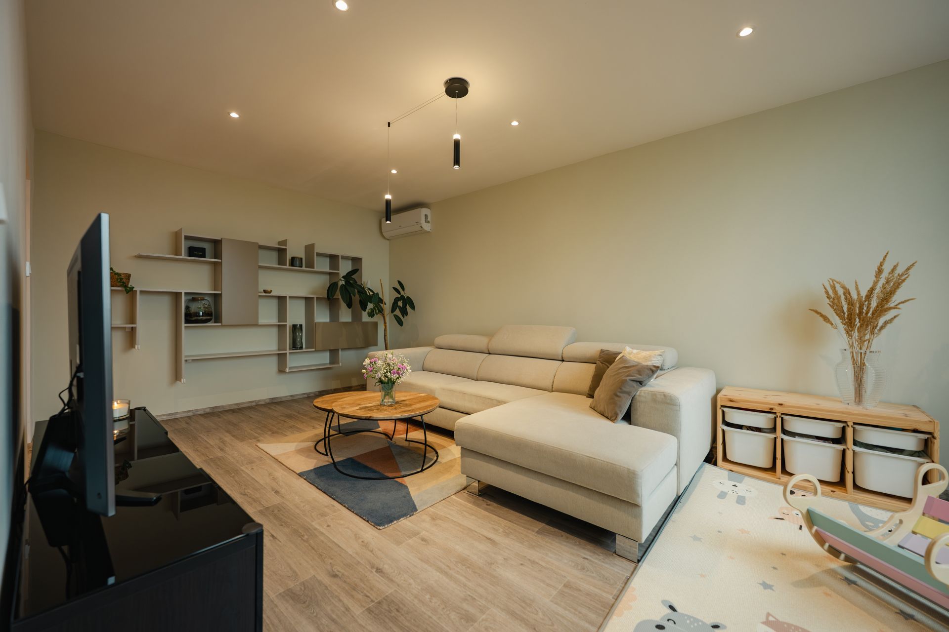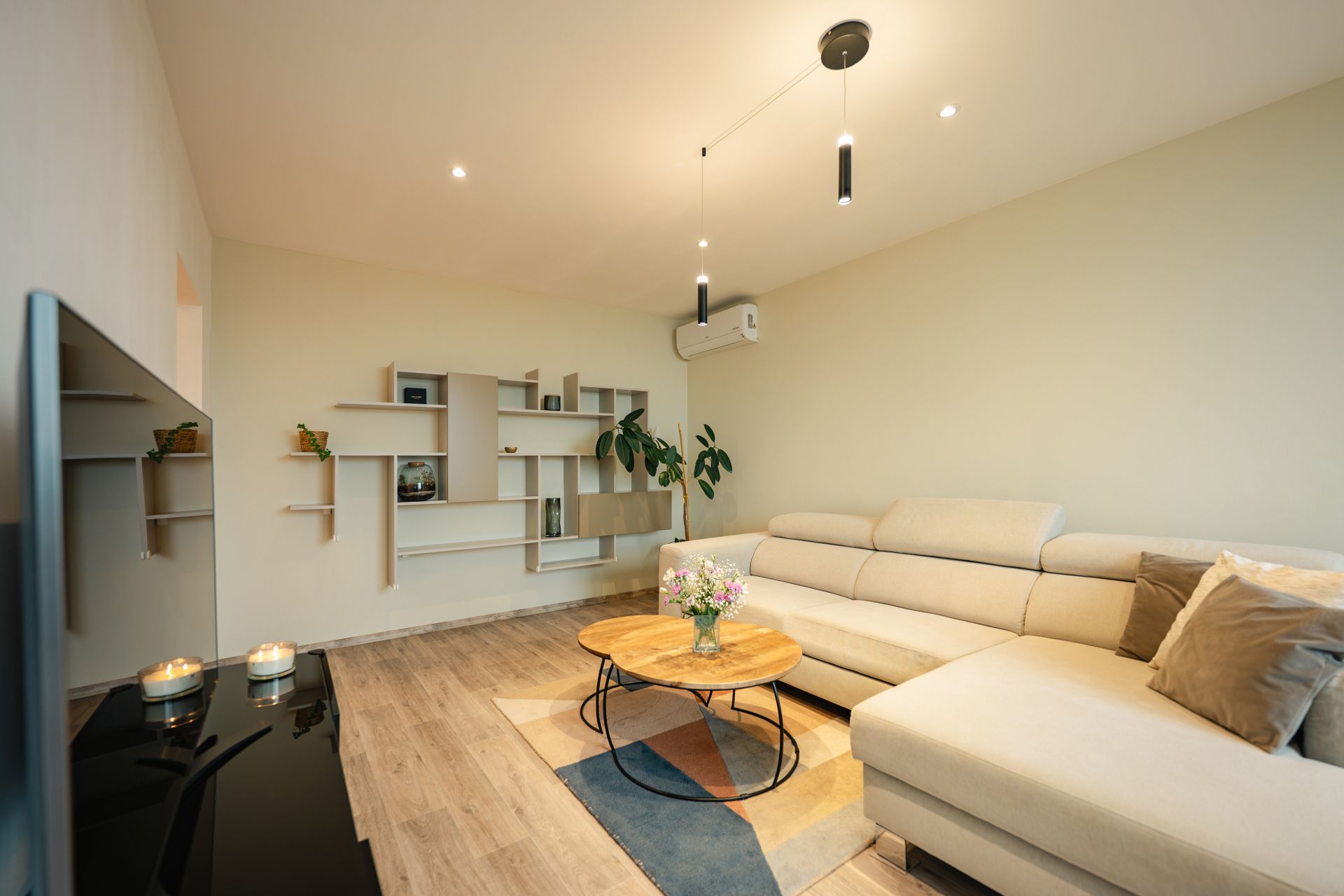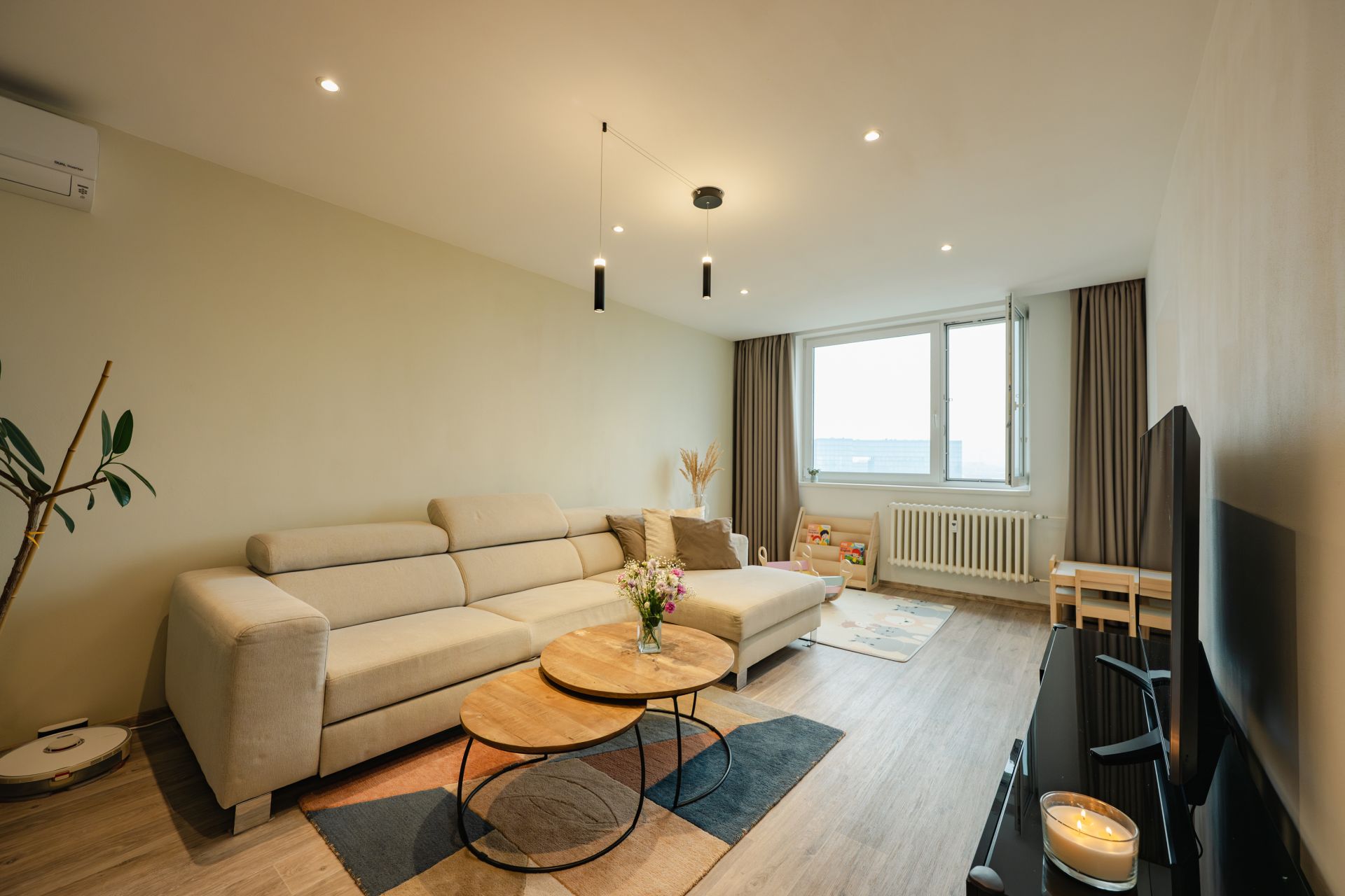 Moderní prostor, chytré vychytávky, nábytek na míru, klimatizace ve všech pokojích a k tomu balkon kde máš klid, soukromí a výhled.