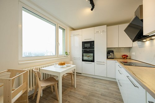 Dispozice 3+1, obytná plocha 74 m2, umístění v 8. patře z 8. s novým výtahem.