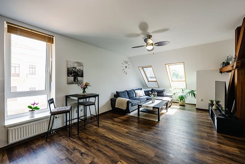 Tento byt je ideální pro páry nebo pro rodiny, které hledají originální prostorné bydlení a bezpečné prostředí pro děti a domácí mazlíčky.