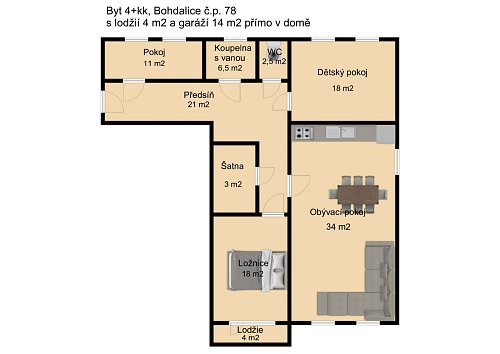 Prostorný byt 4+kk v Bohdalicích s lodžií a garáží přímo v domě